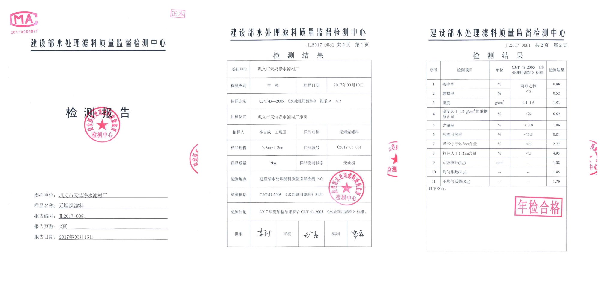 我公司無煙煤濾料通過國家建設部濾料檢測中心的嚴格檢測,并由河南省衛生廳頒發涉水產品衛生許可證!我們還采用獨有的水洗工藝,使得煤質更純凈,色澤更亮麗,杜絕粉塵的產生,但我們也進行了烘干,絕不使水分含量超過國家標準,所以我們的包裝會比常規大15%。請您認真鑒別!!