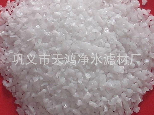 天鴻牌精制石英砂濾料是采用高純度的石英礦石,經破碎、篩分、水洗、酸洗、烘干加工而成,外觀潔白,多棱角,無粉末積附于石英砂表面,含硅量達到99.9%,精制石英砂濾料適用于電力系統的多介質過濾器、離子交換器、活性炭過濾器墊層及水中含有酸堿成份的水處理過濾。