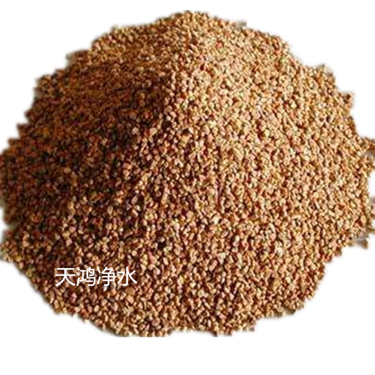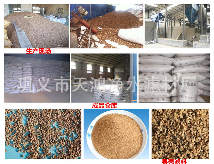 果殼濾料采用優質山核桃殼作原料,經破碎、拋光、蒸洗、藥物處理,多次篩選加工而成。此濾料耐磨、抗壓、不在酸堿性水中溶解,截污能力強、濾速快,并經特殊的物理化學處理(將其色素、脂肪、油脂、電付離子去除干凈),使果殼濾料在水處理中具有較強的除油性能,除固體微粒,易反洗等優良性能,廣泛運用在油田含油污水處理、工業廢水處理和民用水處理。果殼濾料是取代石英砂濾料,提高水質,大幅度降低水處理成本的新一代濾料。