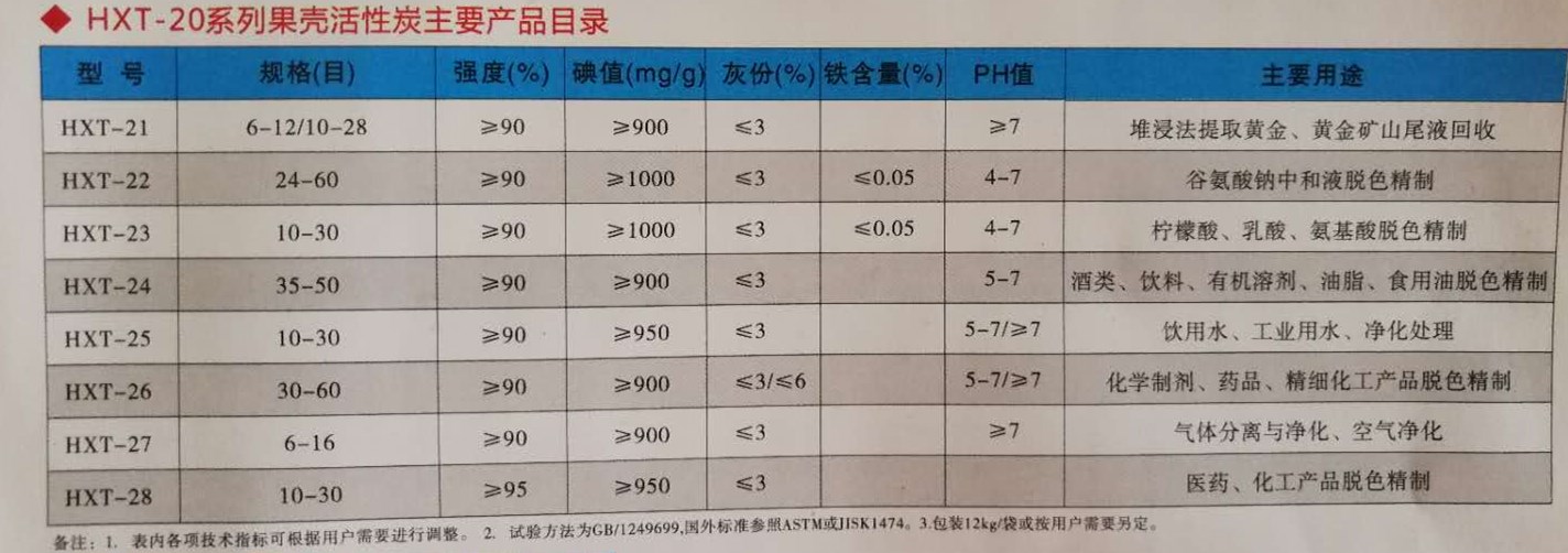 果殼活性炭技術指標